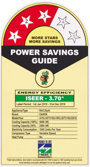 When compliance with energy efficiency has been proven, BEE grants Star Rating Labels (from 1 to 5) to appliances based on their design and performance.