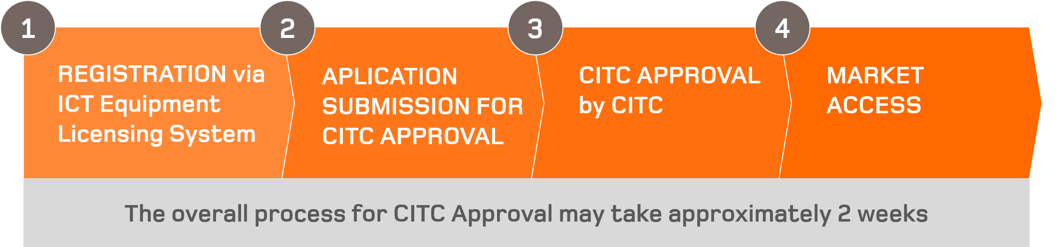 In-country Testing is not required for CITC approval and a Local Representative is not required.