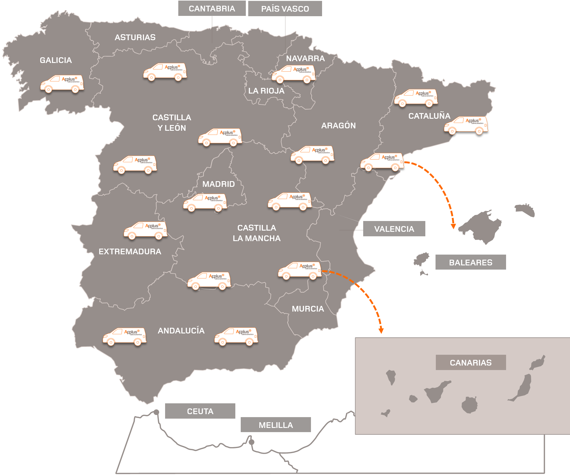 Our network of 16 accredited Mobile Units qualified of performing calibrations accredited by ENAC with accreditation No. 25 / LC10.016 and No. 25 / LC10.151 is spread throughout the Iberian Peninsula. These units are located at strategic points (see the map) to ensure they cover every location, including the Balearic and Canary Islands. This calibration is performed with the same guarantees as in a permanent laboratory, but with the peculiarity that it is the technician who travels to the customer's facilities with the calibration standards installed in the mobile unit. This is a solution adapted to the needs of large, multi-site companies who have lots of measuring equipment that needs to be continuously available 24 hours a day.
