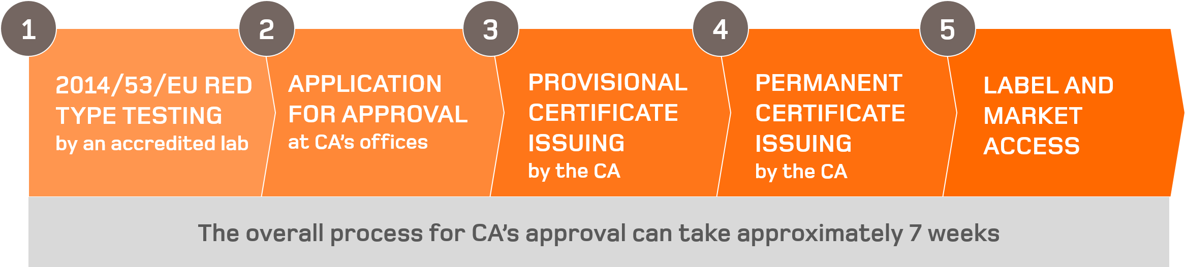 The NCA Approval process can take up to approximately 8 weeks. The validity of the Certificate of Conformity is permanent.